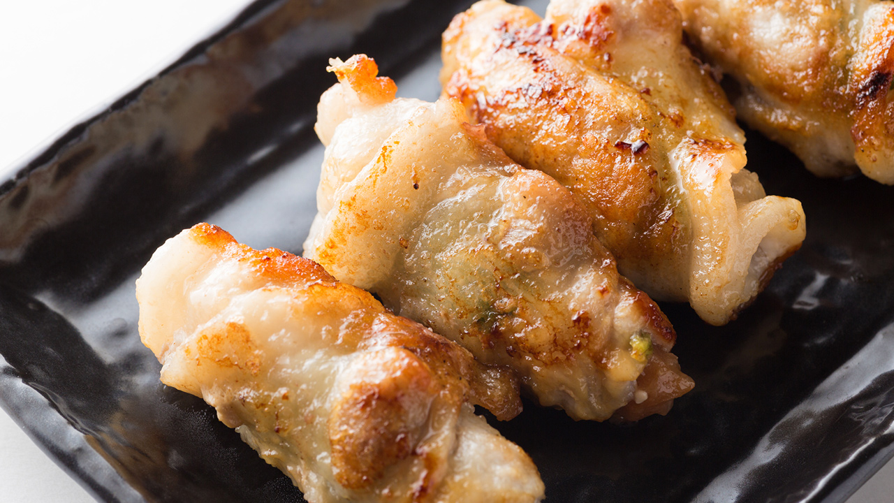 相性抜群な大葉と梅を使った、おかずやおつまみにぴったりの料理です。豚薄切り肉の上に、種を取り除いてつぶした梅干しと保存しておいた大葉、チーズをのせ、豚肉を巻きます。巻き終わりを下にしてフライパンで焼き、全体に焼き目が付いたら完成です。