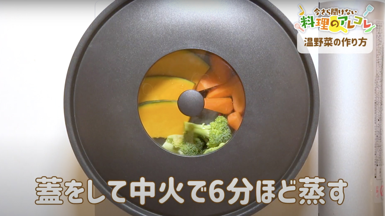 たとえせいろを持っていなくても、フライパンがあれば温野菜を手軽に作れます。せいろよりは仕上がりの味が若干劣るものの、蒸気で加熱するため野菜がほっくりと美味しく仕上がります。