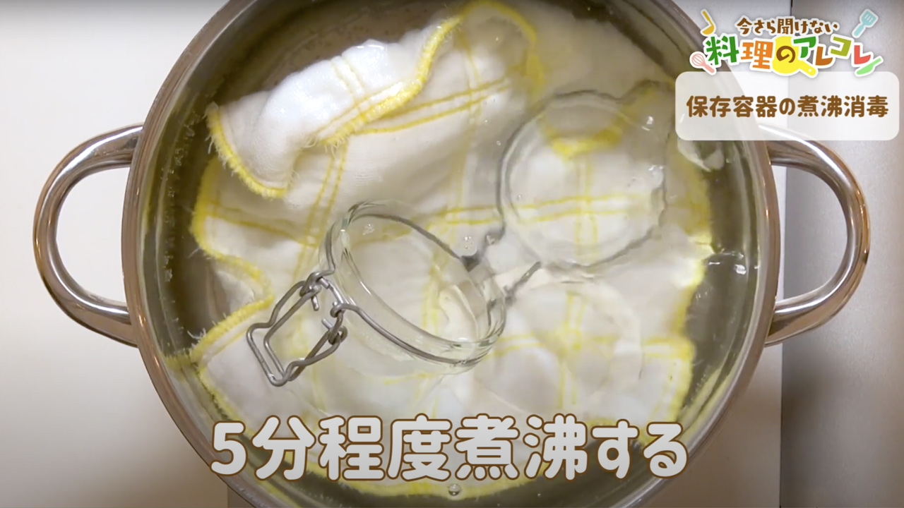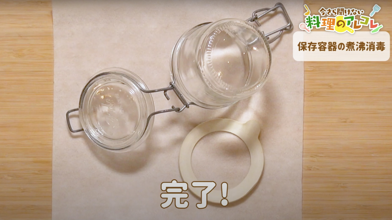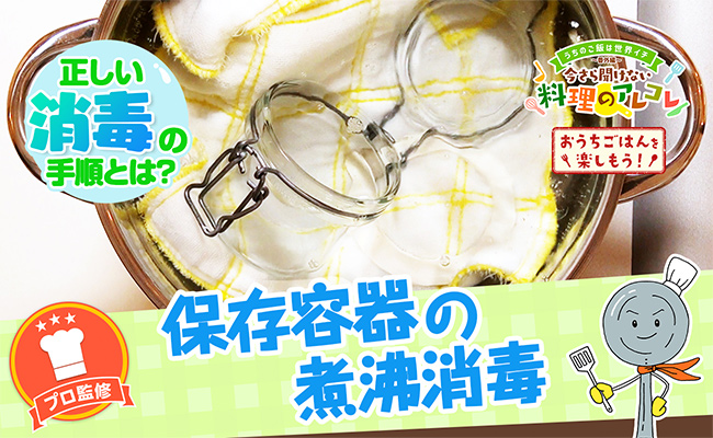 「うちのご飯は世界イチ」の番外編、お料理の基本をご紹介するミニレッスンへようこそ。第160回は、「瓶の煮沸消毒の方法」をご紹介します。瓶やプラスチック保存容器などの煮沸消毒のやり方を分かりやすく動画で解説します。