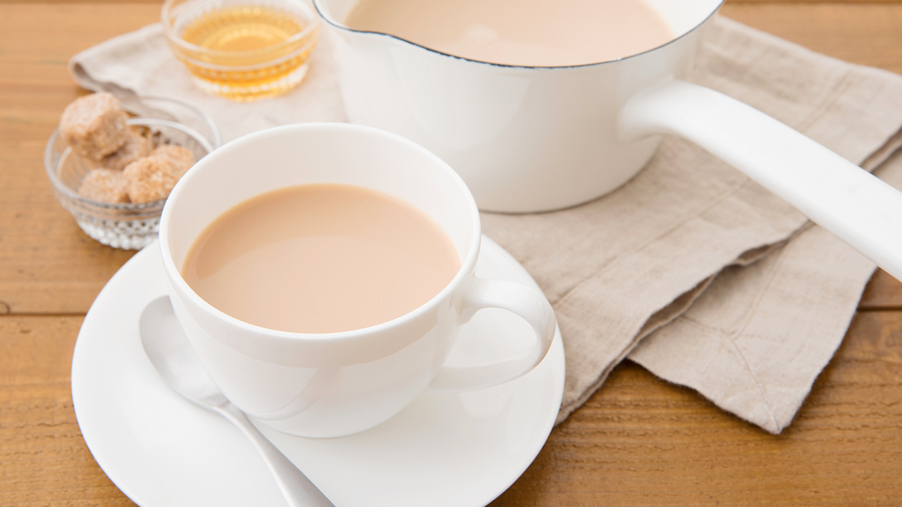 紅茶にミルクを加えるとコクが増して、やさしい味わいになります。紅茶に冷たいままの牛乳を注ぎ入れれば完成です。牛乳には紅茶の渋みのもとであるタンニンを和らげる作用があるため、マイルドな味わいになりますよ。