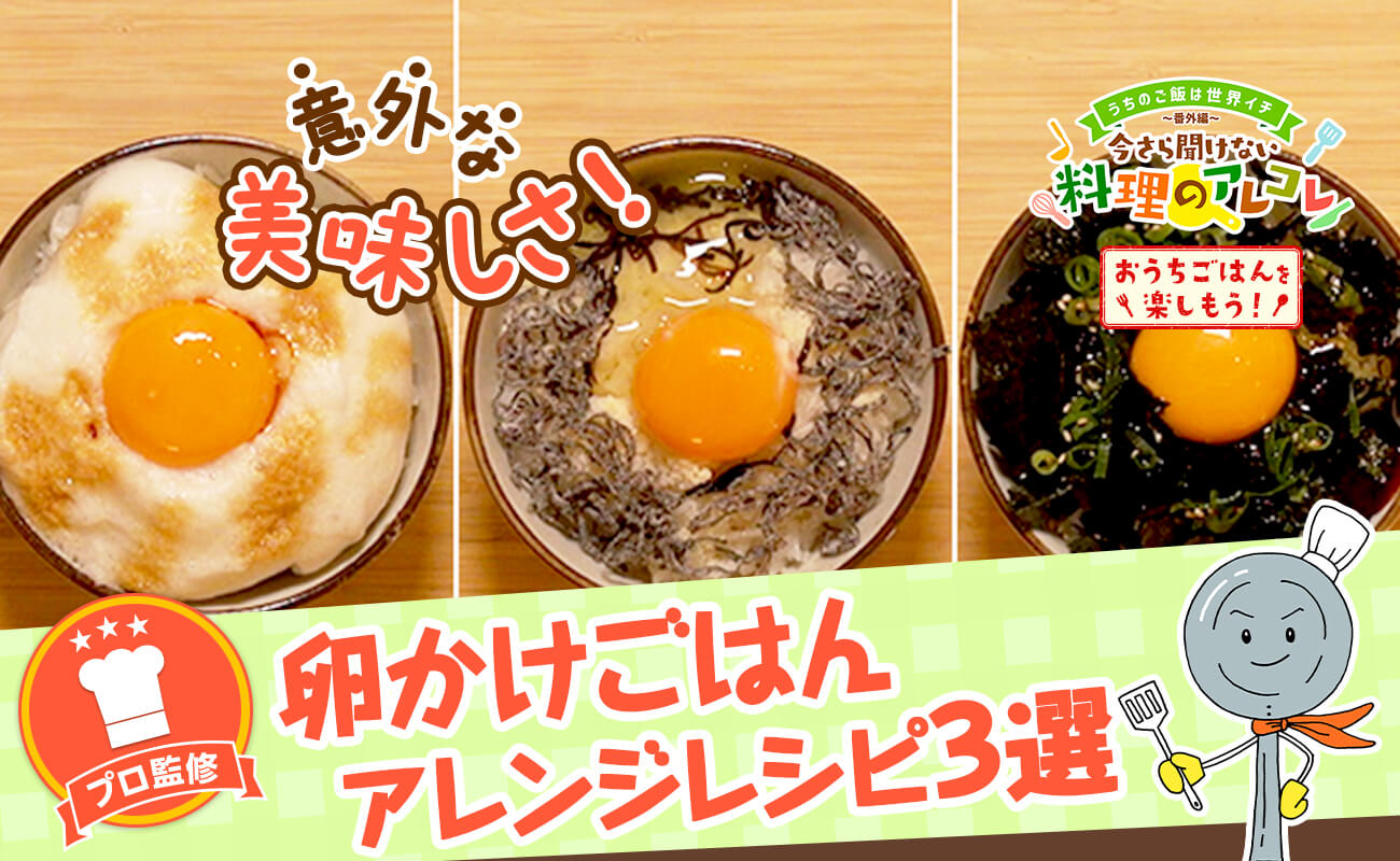 「うちのご飯は世界イチ」の番外編、お料理の基本をご紹介するミニレッスンへようこそ。第172回は、「卵かけごはんのアレンジレシピ3選」です。いつもの卵かけごはんがさらに美味しくなるアレンジレシピを動画でご紹介します。