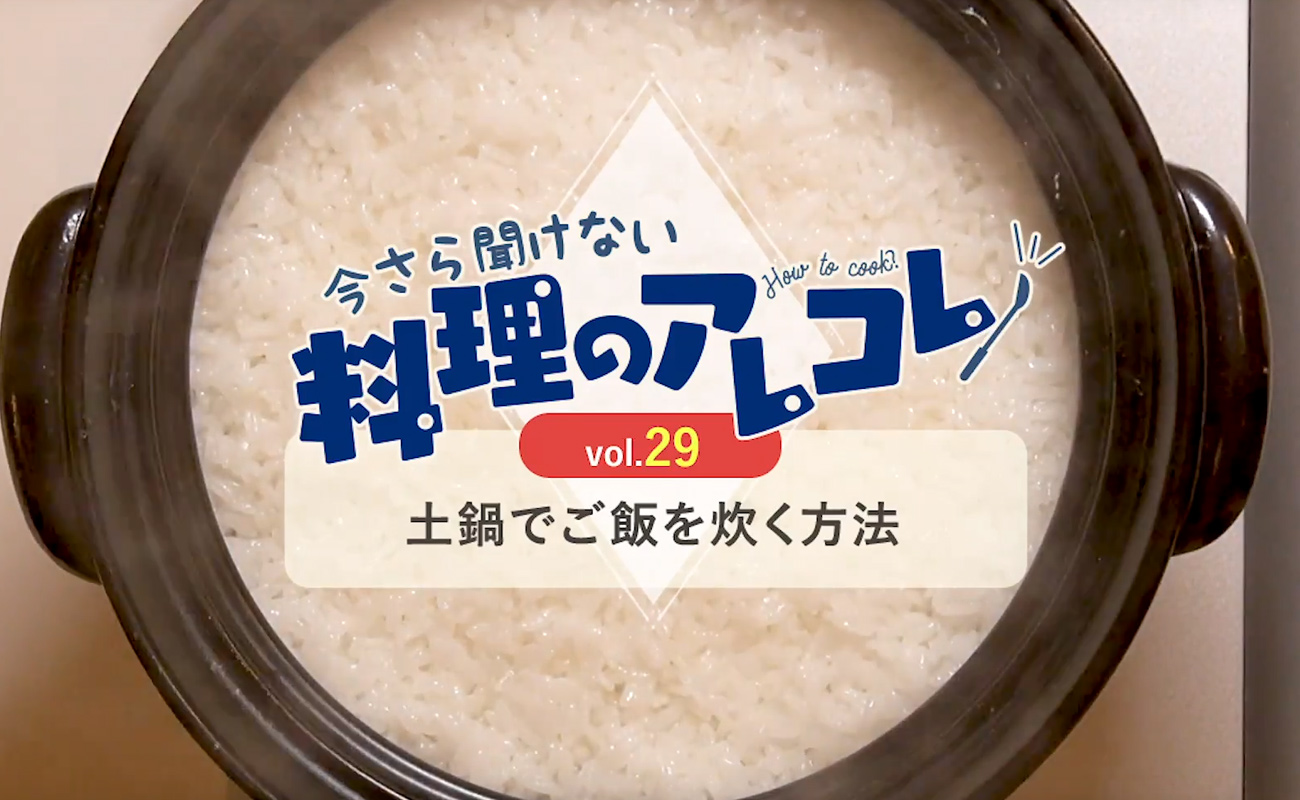 「うちのご飯は世界イチ」の番外編、お料理の基本をご紹介するミニレッスンへようこそ。第29回は、「土鍋でご飯を炊く方法」です。米本来の甘さやおこげが楽しめる土鍋を使ったご飯の炊き方をご紹介します。