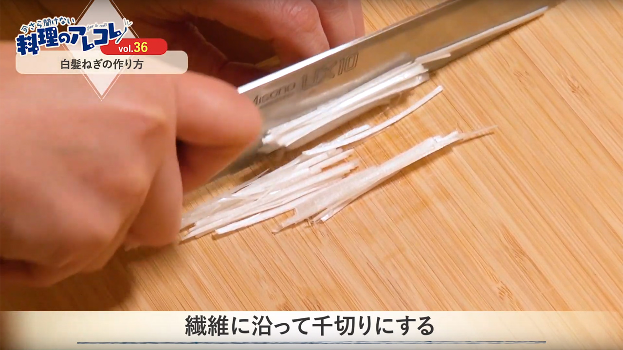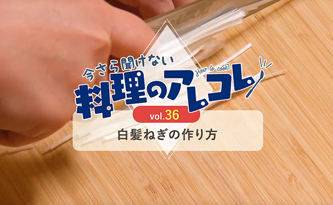 「うちのご飯は世界イチ」の番外編、お料理の基本をご紹介するミニレッスンへようこそ。第36回は「白髪ねぎの作り方」です。料理の飾りや食感・味のアクセントになる白髪ねぎの作り方をご紹介します。