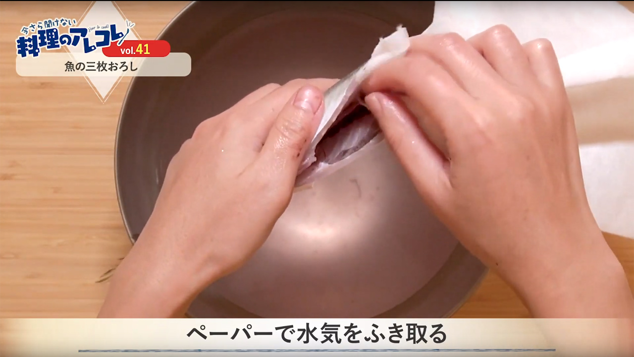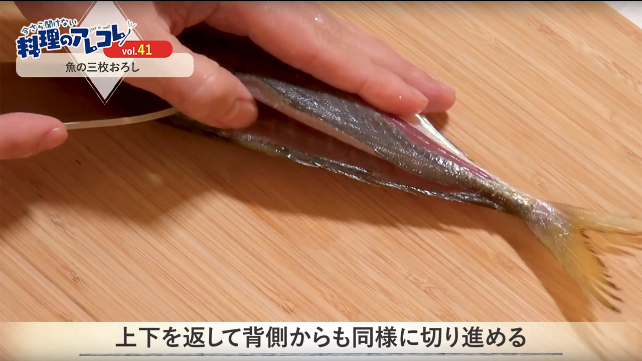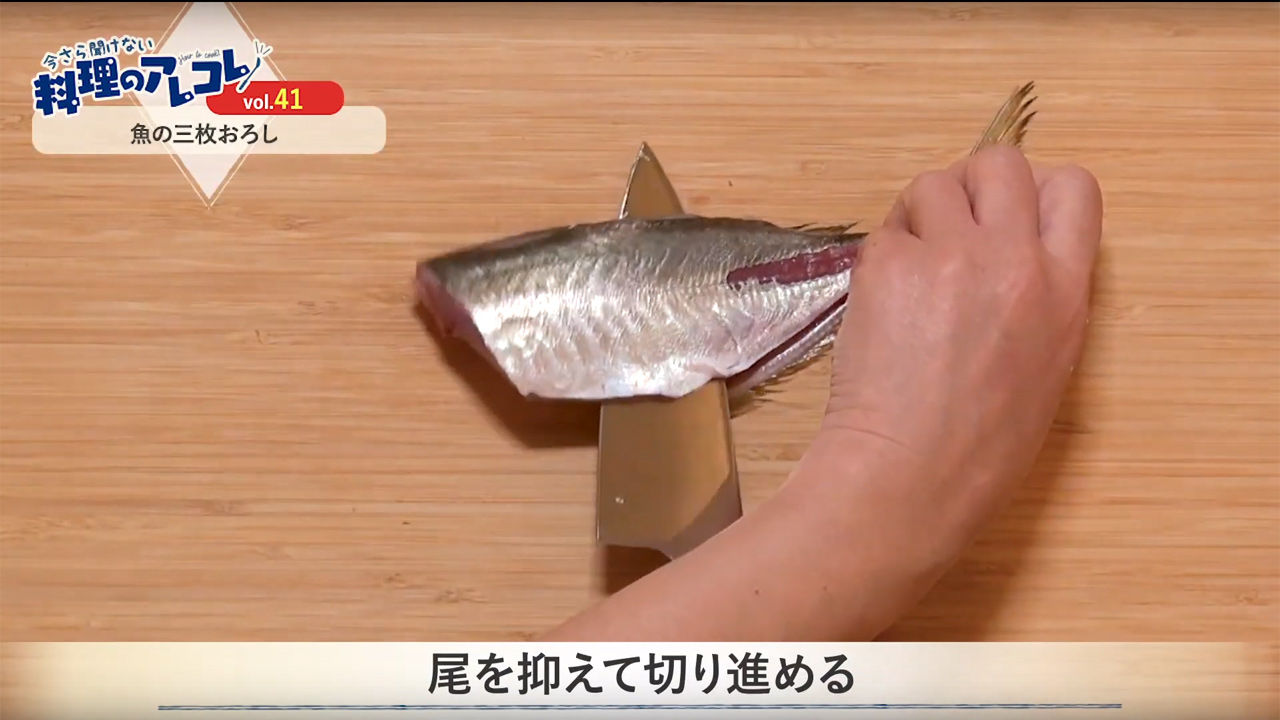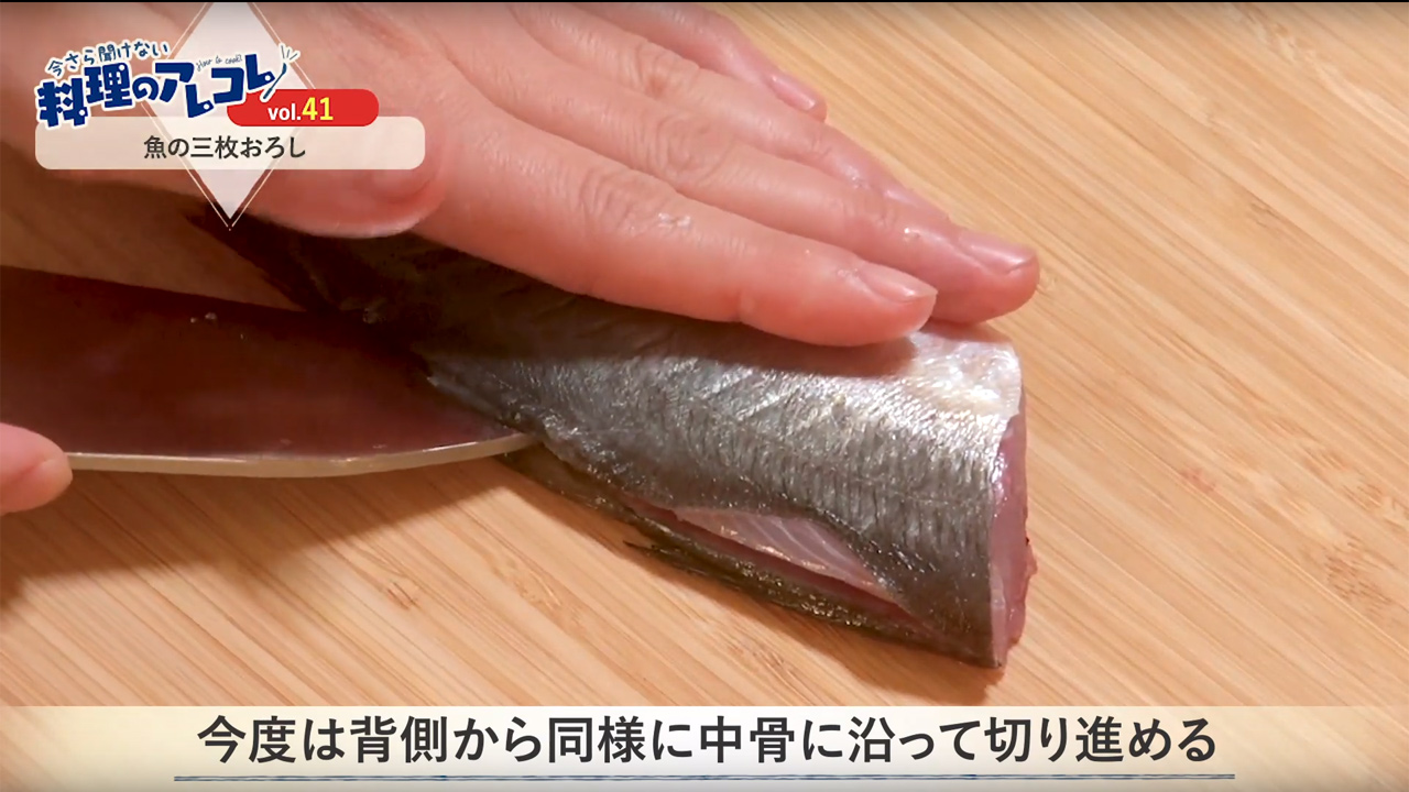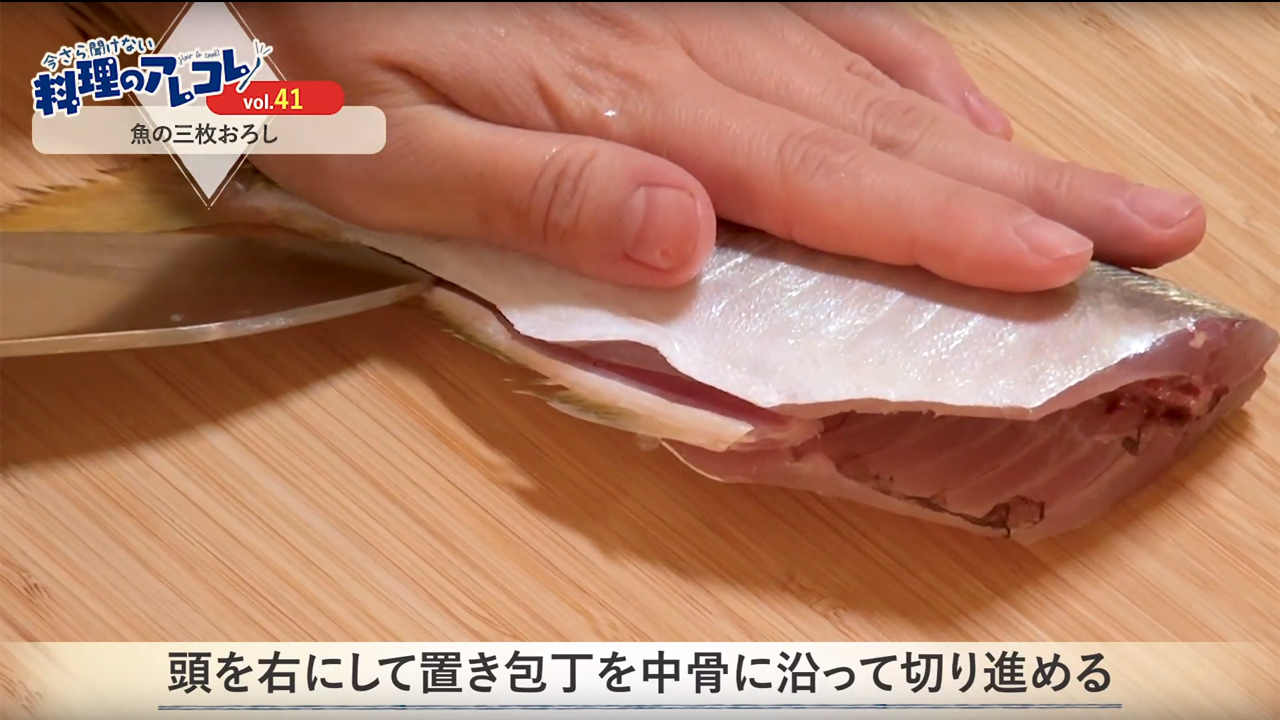 三枚おろしとは、魚のさばき方の一種で、右身、左身、中骨の3つの部分に切り分けることをいいます。このテクニックは、あじだけでなく、さんまやさば、ぶりなどの魚をおろすときにも使えますよ。ぜひチャレンジしてみてください!