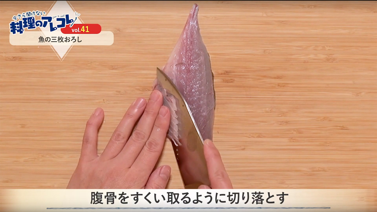 三枚におろしたあじを調理する際には、腹骨と小骨(血合い骨)を除去する必要があります。その方法をお伝えします。