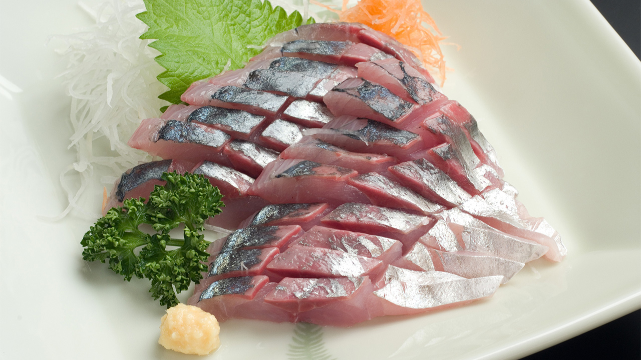 新鮮なあじが手に入ったら、すぐに三枚おろしにして、刺身でいただきましょう。まず骨抜きをした後、身から皮をはぎ取ります。次に包丁を斜めに入れて、上から下へ向けて切ってください。最後にしその葉、大根のツマと一緒にお皿に盛ったら完成です。