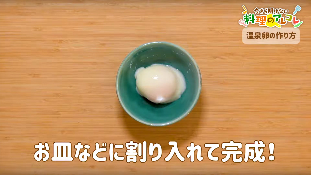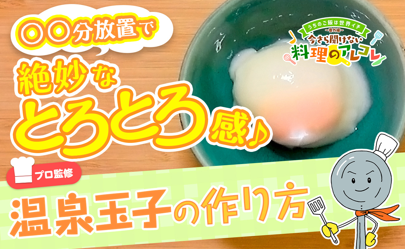 「うちのご飯は世界イチ」の番外編、お料理の基本をご紹介するミニレッスンへようこそ。第54回は、トロトロ加減が絶妙な「温泉卵の作り方」について動画でご紹介します。