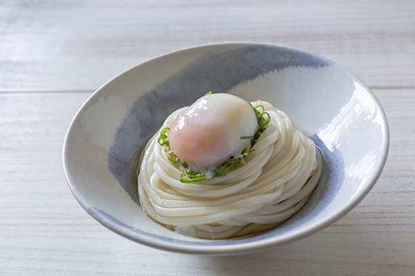 トロトロ温泉卵のせ冷製うどんの完成!