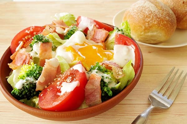 温泉卵のシーザーサラダ