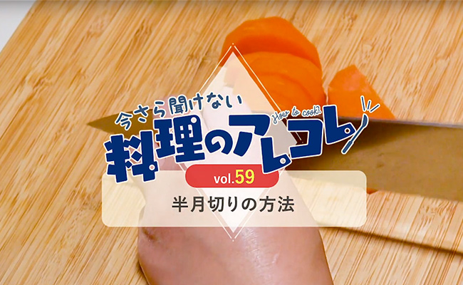 「うちのご飯は世界イチ」の番外編、お料理の基本をご紹介するミニレッスンへようこそ。第59回は、「半月切りの方法」です。見た目や味にも影響する野菜や果物の切り方についてご紹介します。