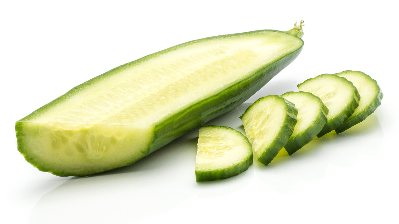 きゅうりは最初に両端を切り落として、縦半分に切ります。切り口を下にして、端から一定の幅で切ってください。