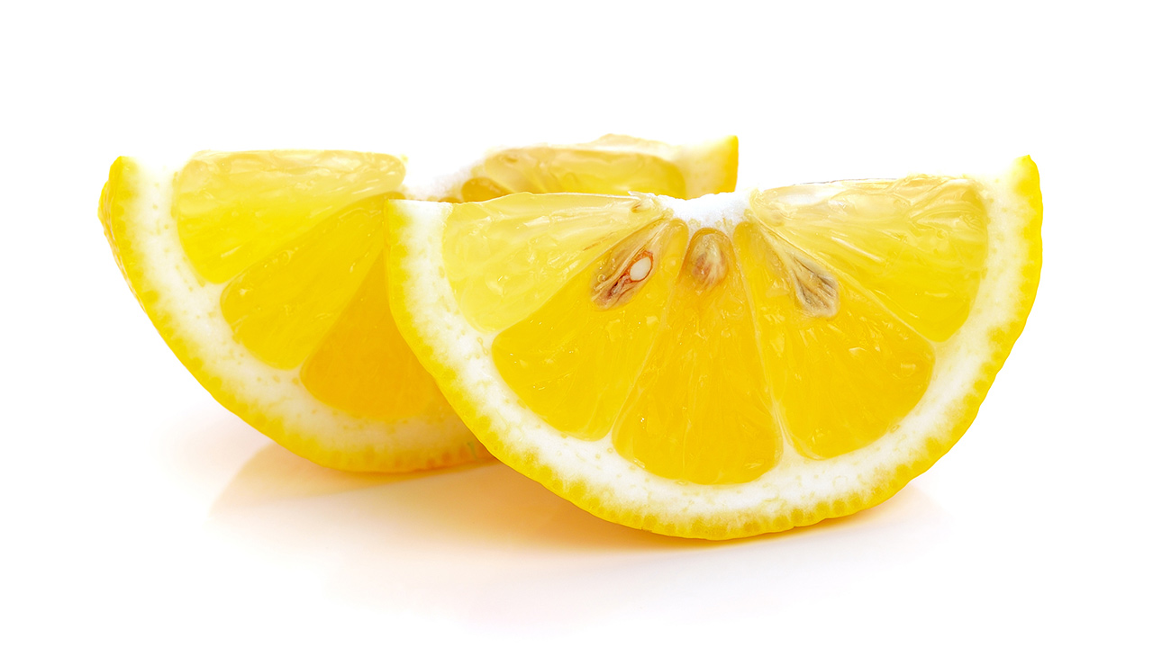 レモンの端を切り落として、縦半分に切ります。切り口を下にして、端から一定の幅で切ってください。