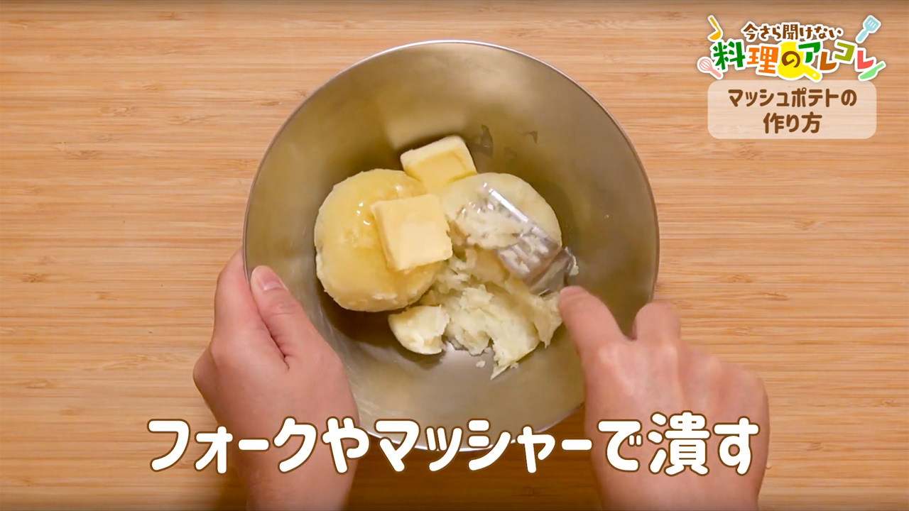 冷えると粘り気が出てしまい、ホクホクした食感がなくなってしまうので、熱いうちに潰しましょう。