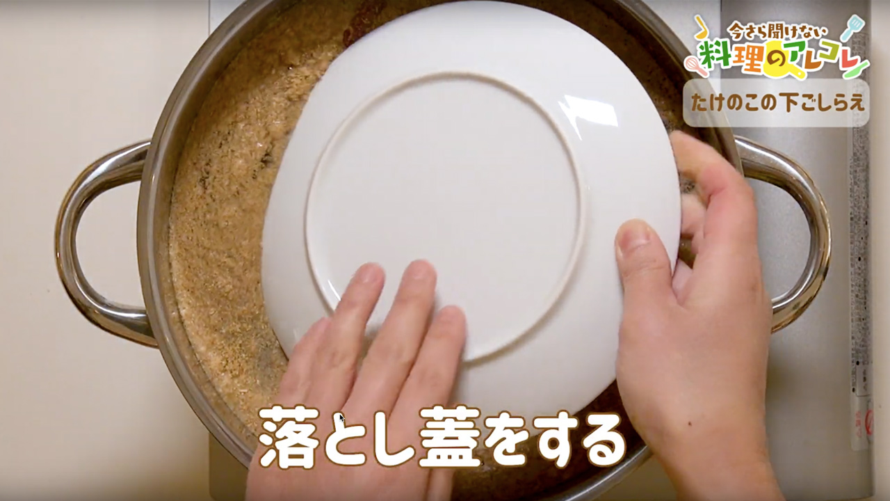 沸騰したら落とし蓋(皿でも代用可)をします。