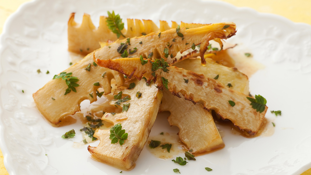 根元側に残っているかたい皮や赤黒い粒は、包丁でそぎ取ります。先端部分はかたい部分を切り落として、やわらかい部分だけ残しましょう。