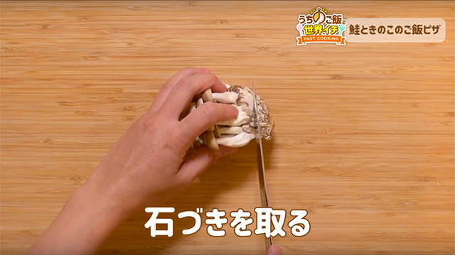 石づきを取ったしめじと、まいたけを手でほぐします。エリンギは縦半分に切ってから薄切りにします。