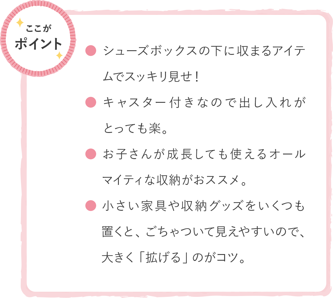 外出時に使うおもちゃやカバン、帽子が置いたままになる