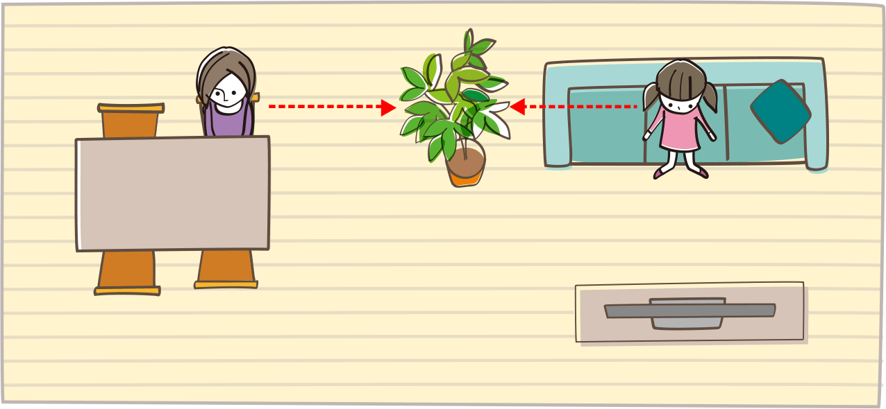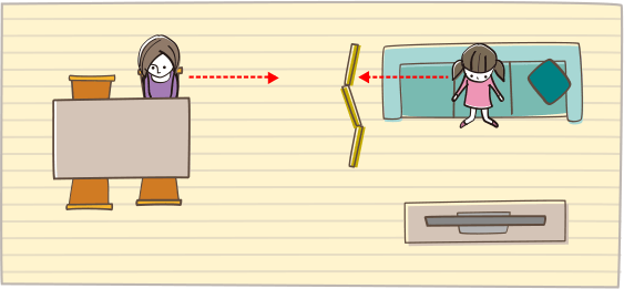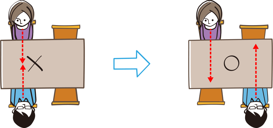 90度に座り、互いが直接、見えないようにする