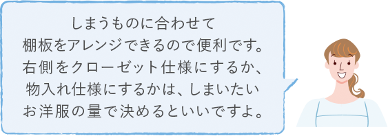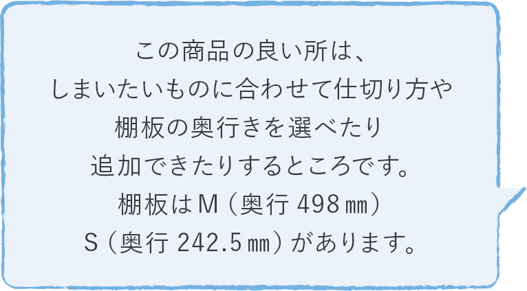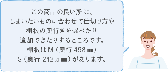 右側を棚板Mの物入れ仕様にして、