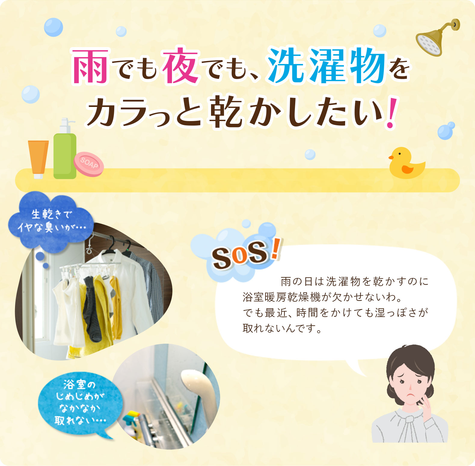 雨でも夜でも、洗濯物をカラっと乾かしたい!