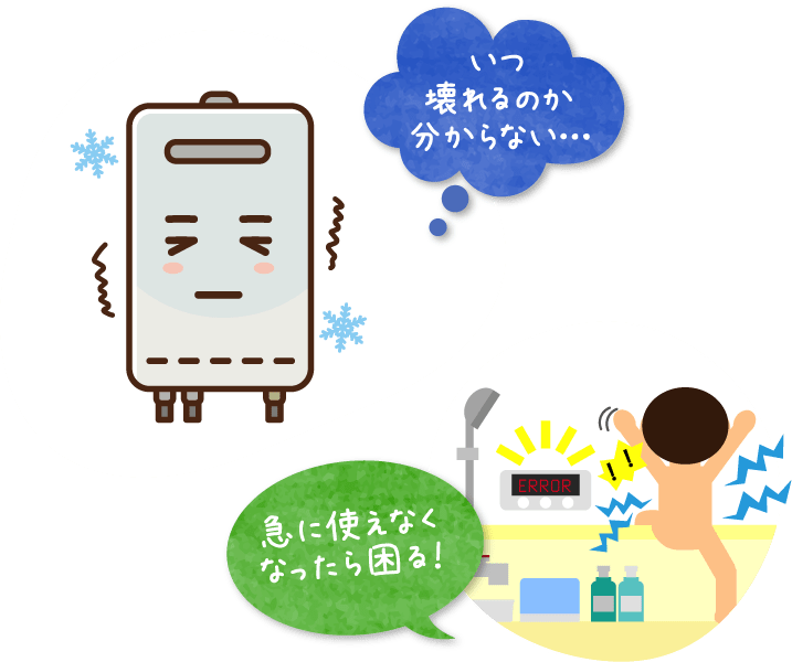 最近、同じマンションの方から、給湯器がいきなり使えなくなり大変だったと聞きました。 突然故障したら困るので、壊れる前に交換したほうが良いかしら。