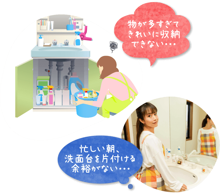 洗面まわりのお悩みのひとつに「小物が多くてまとめきれない」というものがあります。