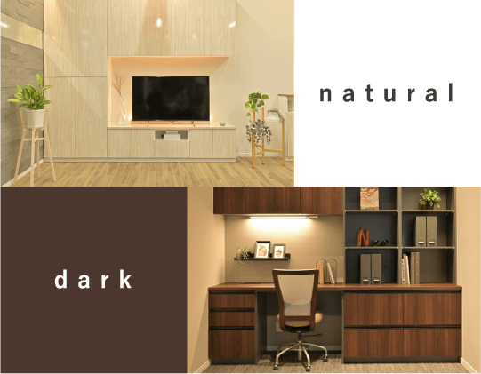 白やベージュを基調とした明るくナチュラルな雰囲気にするか、ダークブラウンやブラックなど重厚感ある落ち着いたテイストにするか。また、木目調がよいか光沢のある鏡面仕上げがよいかなど、表現したい「わが家」のイメージを考えてカラーや質感を選びましょう。