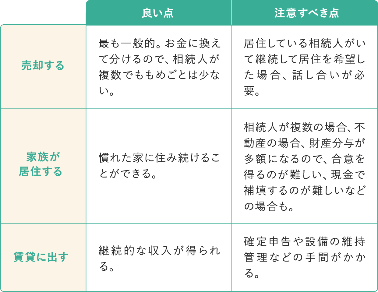 相続する財産のなかにマンションがある場合は、大まかに分けて以下の3つの使い道があります。