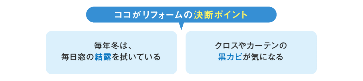 Point①の対策をしても改善せず、次のような状態であれば窓のリフォームを検討しましょう。
