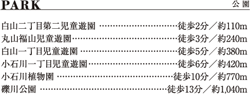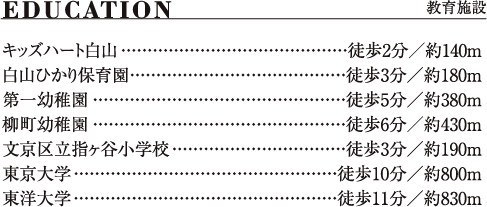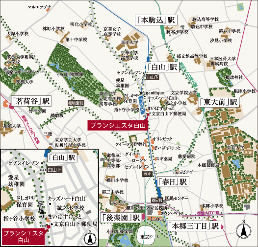 山手線内側の都心にありながら、閑静で緑豊かな白山エリア。ふだん使いのスーパーをはじめ生活利便施設が豊富に揃うのはもちろん、