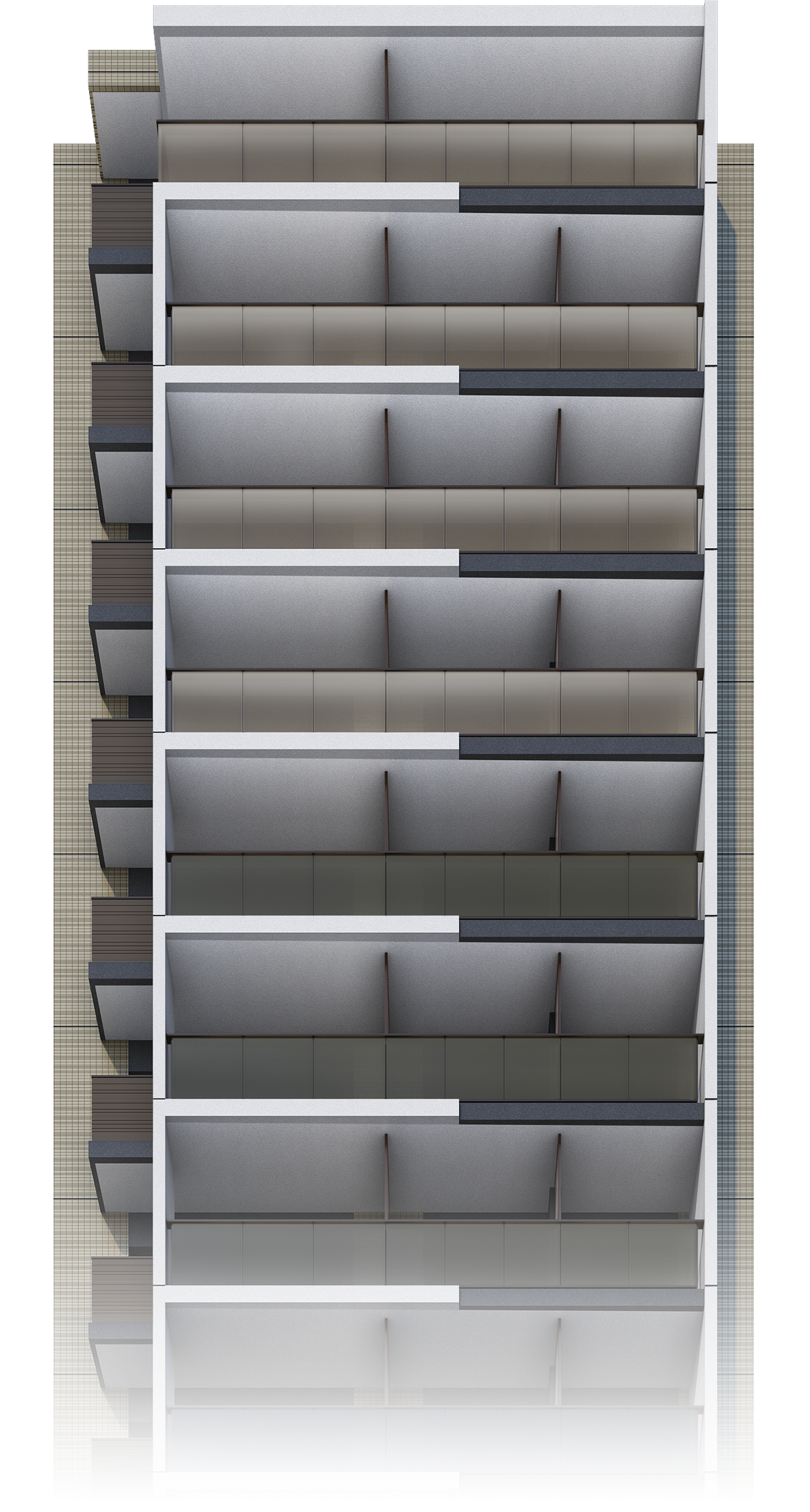 ガラス手摺のグラデーションが建物に躍動感を与え、