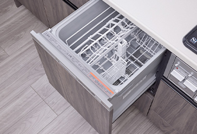 毎日の家事を快適にする食器洗い乾燥機を設置。キッチン内蔵で、見た目もスッキリしています。