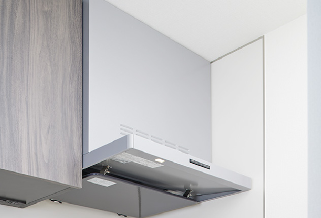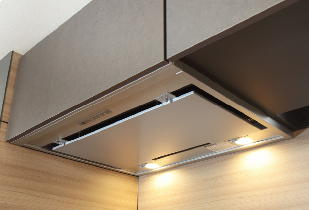 整流板の効果により吸引効果を高めたレンジフードを採用しています。