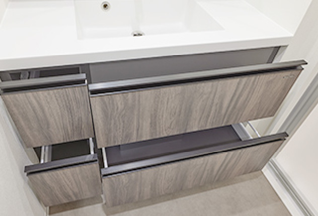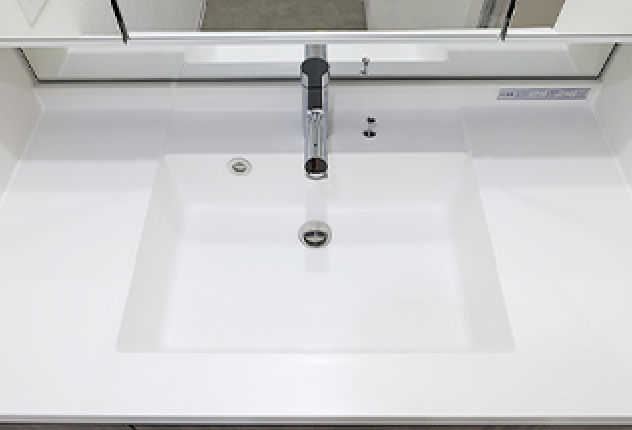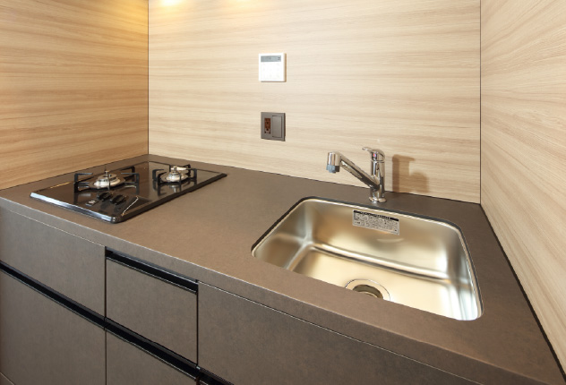 ワークトップにはメラミンの化粧板カウンターを採用。耐久性や耐摩耗性が高く、デザイン性にも優れています。