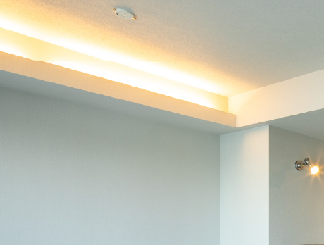 吊戸と同じ面材をレンジフードの前面に採用することで、レンジフードの存在感をおさえ、吊戸と一体感のあるデザインに仕上げています。