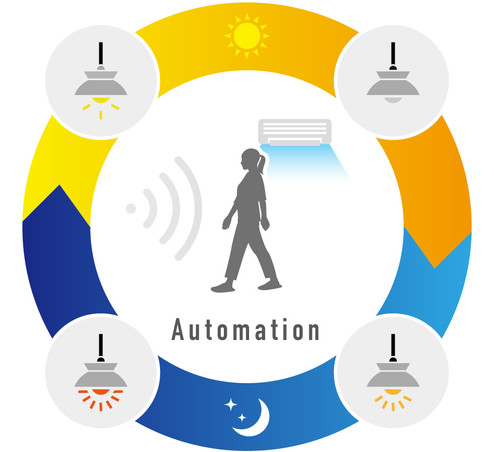 「おまかせオートライティング」は、何もしなくても自動で最適な照明環境を提供します。必要なときには簡単にアプリで操作・調整できます。