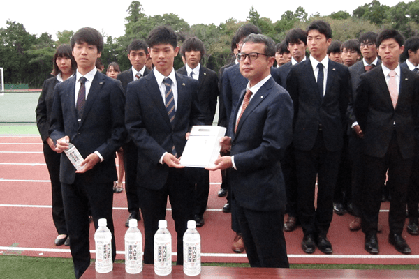 たなかみ米と応援メッセージペットボトルを差し入れしました。