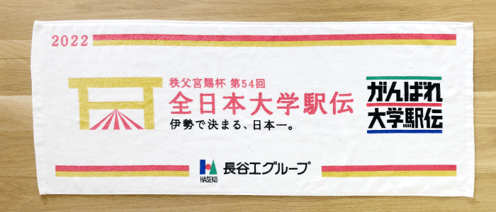 出場チームに差し入れし好評をいただいた、長谷工オリジナル駅伝応援ラベルのミネラルウォーターです。ペットボトルは環境に配慮したボトルで、地区別、本大会出場校別など計34種類あります(非売品)。