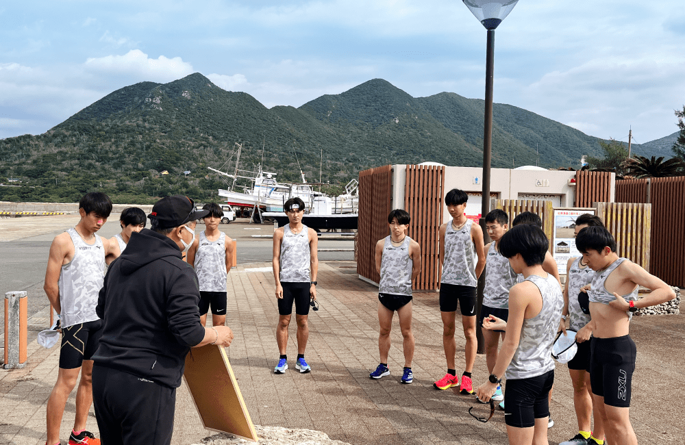 今年のチームの 特長をお聞かせください! 練習でも4年生の丹所、山谷、宗像を中心に、 各学年3名から5名のチーム内で競争がみられます。 選手たちにどんな走りを 期待していますか? どんな状況でも自身の力を表現出来る走り。 ブレーキしない走りに期待します。 本大会に向けての スローガンなどはありますか? 「優勝」です。