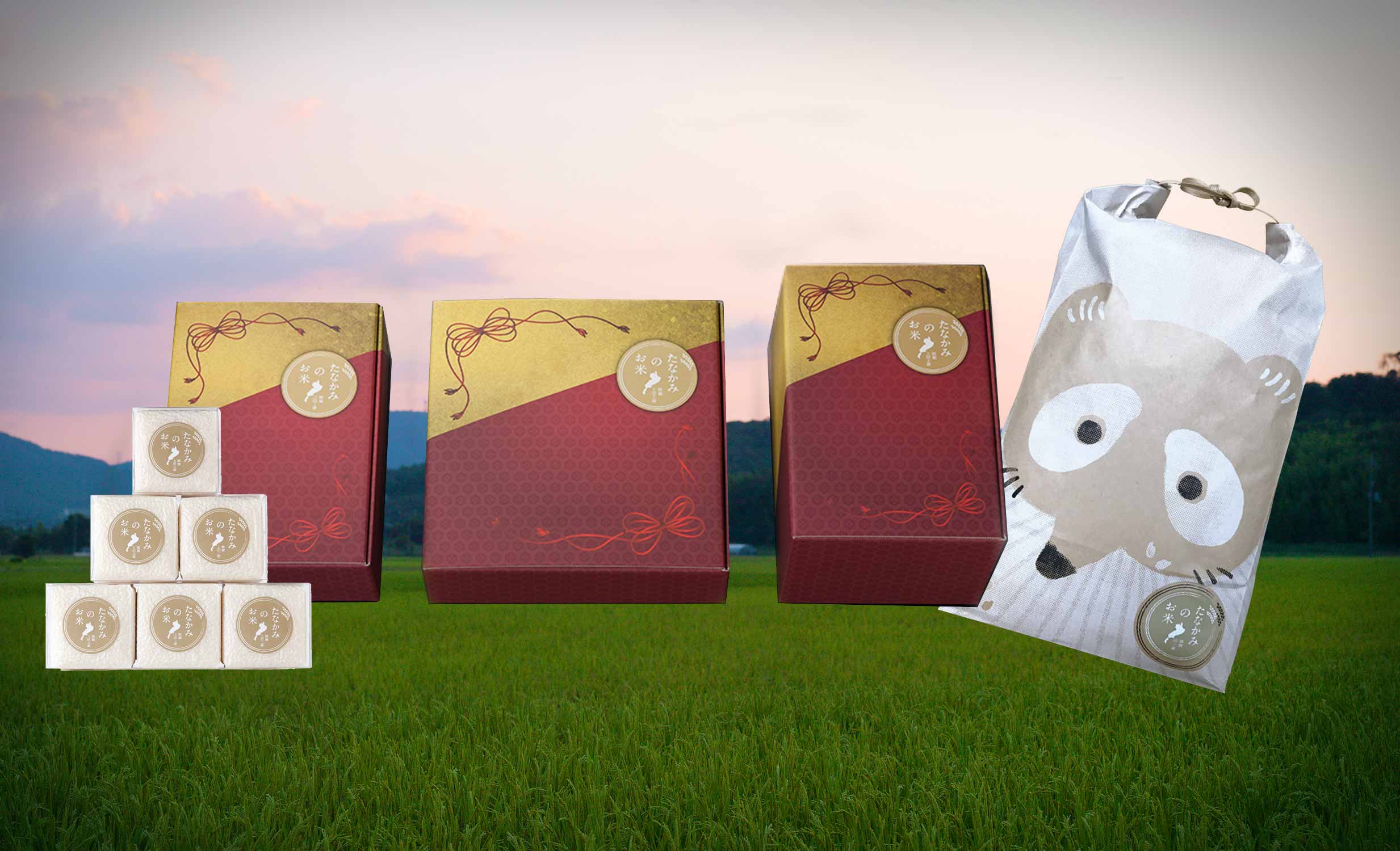ご家庭でもお楽しみいただけるよう、かわいいたぬきのクラフト袋入りをご用意いたしました。ご注文ごとに、発送直前に精米し、「たなかみのお米」本来のおいしさをお届けいたします。