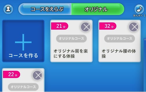 - 介護予防運動指導員がおすすめする9種類の体操コースで様々なシチュエーションの他、目標を設定したコースの中からその日行いたいコースを選択して体操をスタート。
