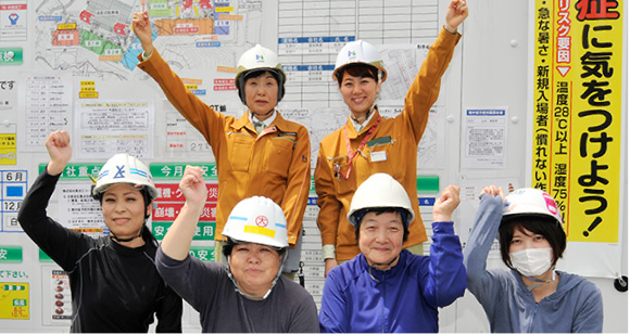 全工期を通して、さまざまな職種の女性の職方さんが携わっています。女性ならではの視点やこだわりを活かして、職場全体の“マナー向上”や“美しい現場づくり”に取り組んでいます。女性同士の意見交換や交流会なども設けて、より良いコミュニケーション、より良い環境整備をすすめています。