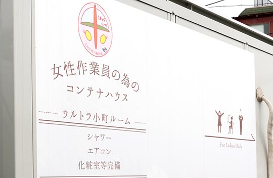 一人ひとりが仕事に対し、強い意志を持って現場で働いていこうという思いをチーム名にしました。女性専用のコンテナハウスの設置。コンテナ内には女性専用のトイレ、シャワールームや洗濯機を完備しました。ウルトラパワーで働くための、環境づくりにも努めています。