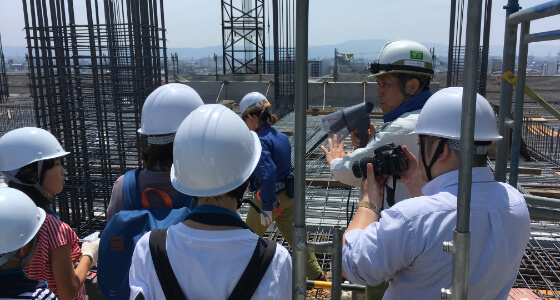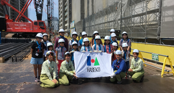長谷工コーポレーションは、建設業で働く魅力を体感してもらうことを目的として、日本建設業連合会が主催する、小中学生および保護者を対象とした、現場見学会「けんせつ探検隊」に参加しています。