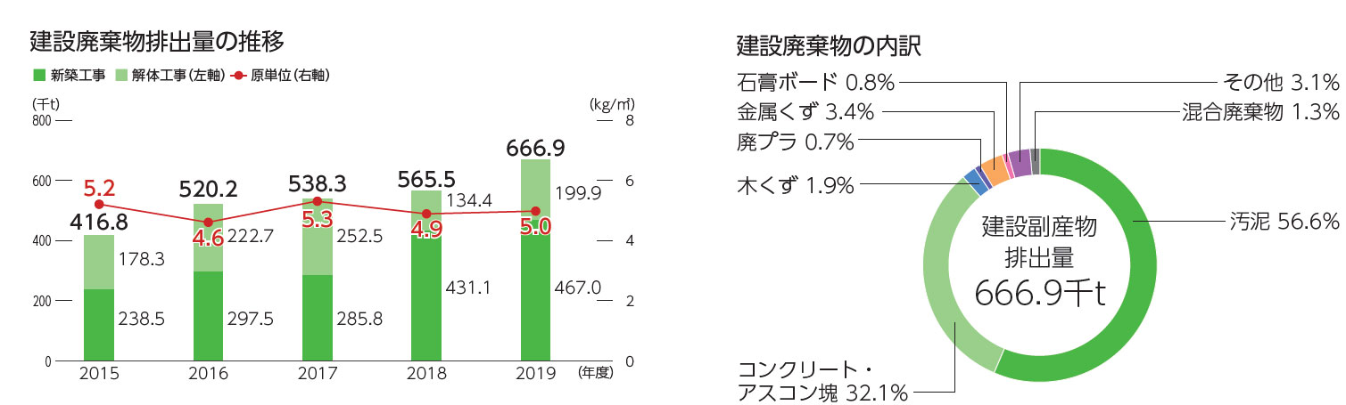 また、一般社団法人日本建設業連合会の建設副産物部会に参加し、他社と協働して廃棄物削減や資源の有効利用に取り組んでいます。