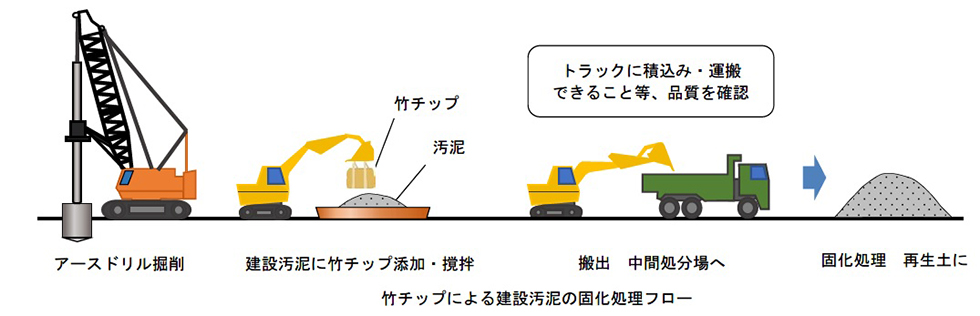 竹チップを活用した建設汚泥の固化処理技術の開発・採用