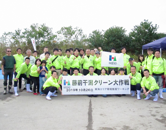 また、掘削工事から発生する土砂を場内埋戻し土としてできるだけ利用しています。収集や排出運搬効率が向上しダンプ台数を低減させることでCO2排出量の削減を図っています。さらに、場外に搬出された建設残土の大半は埋立処分されており、埋立てによる環境破壊の原因にもなるため、残土の搬出量を減らすことで、環境保護にもつなげていきます。