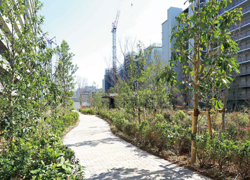 マンション開発にあたっては、環境汚染や騒音・振動などに配慮し、緑地造成なども積極的に提案しています。