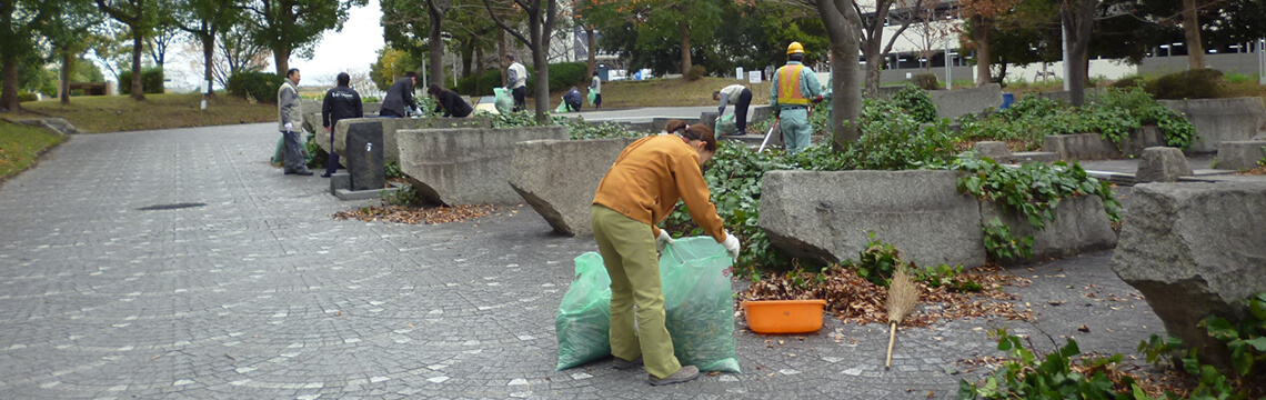 Cleaning activities at park adjacent to worksite of Hama Koshien Phase I 2BL-a Plan