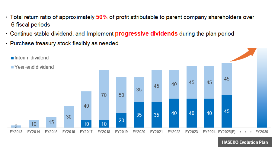 The Shareholder Return Policy of Medium-term Business Plan “Haseko Evolution Plan” from the fiscal year ended March 2026 to the fiscal year ending March 2031 is below.